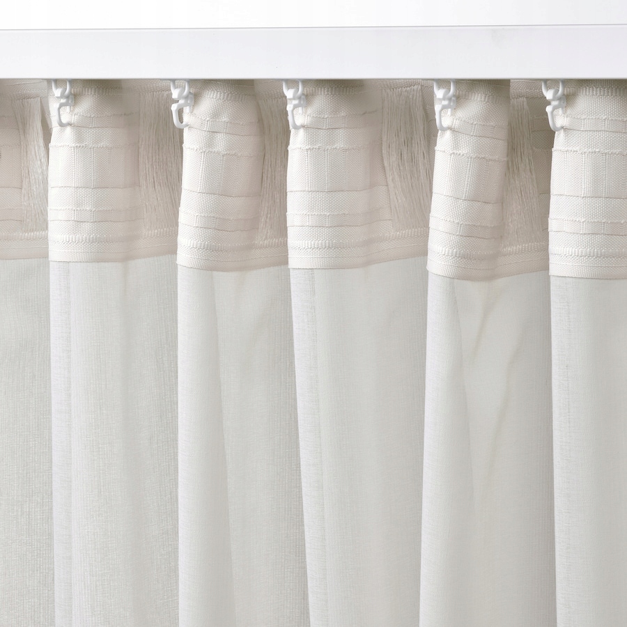 • Prześwitująca zasłona ROSENROBINIA w kolorze śnieżnobiałym filtruje światło i opada z wdziękiem. Taśma marszcząca pozwala zmienić sposób wieszania zasłony. Idealnie pasuje do zasłony zaciemniającej, co pozwala zmieniać oświetlenie.