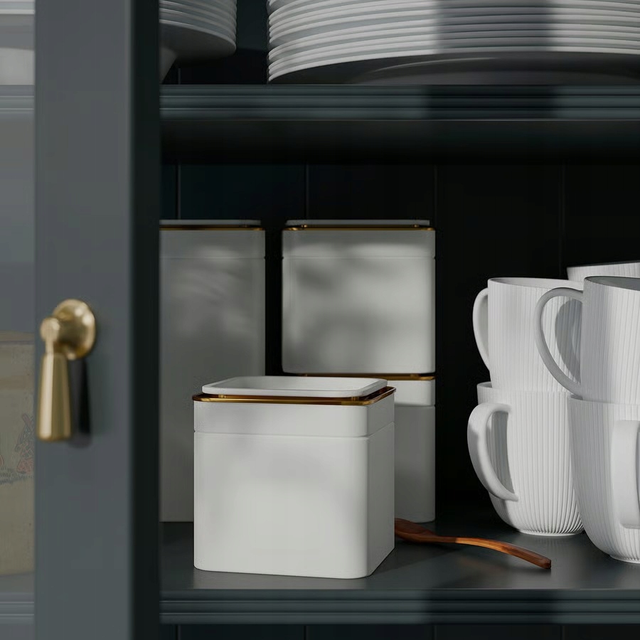 IKEA BLOMNING Puszka z pokrywką kremowa na kawę herbatę 10x10x20 cm