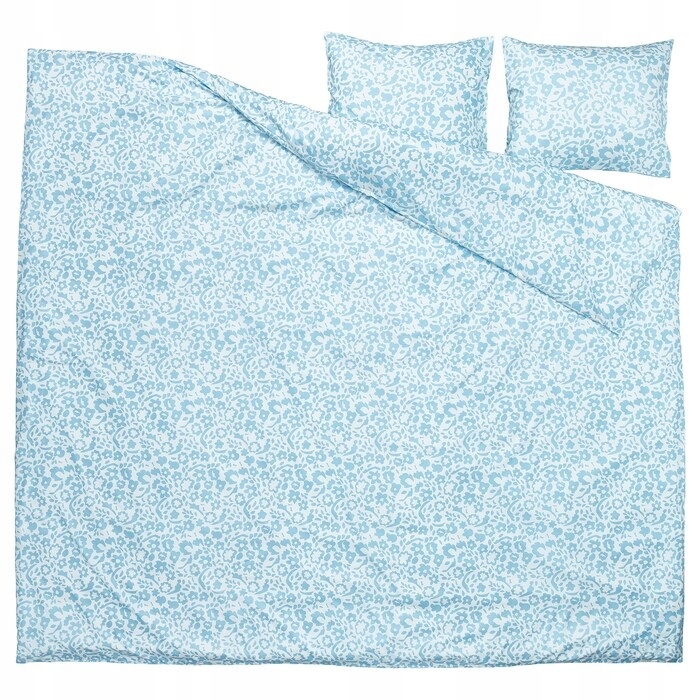 IKEA CYMBALBLOMMAPoszwa na kołdrę i 2 poszewki, biały/niebieski, 200×200/50×60 cm