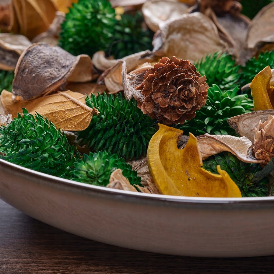 Potpourri stanowi piękną dekorację w misie lub wazonie i wypełnia wnętrze subtelnym zapachem.