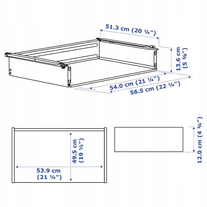 - Szerokość szuflady (wewnętrzna): 53.9 cm