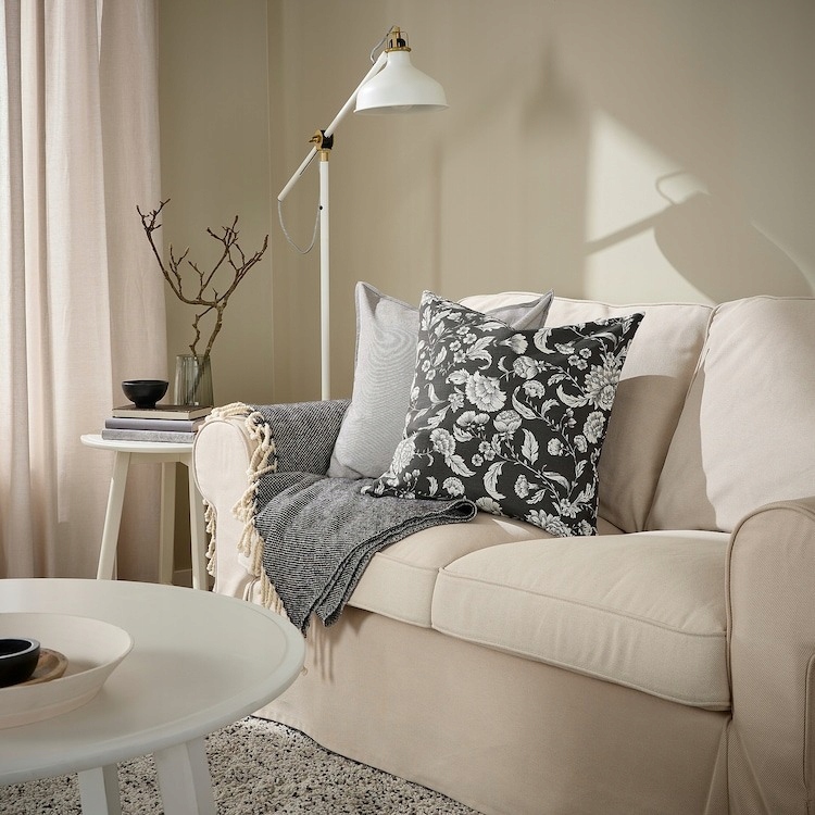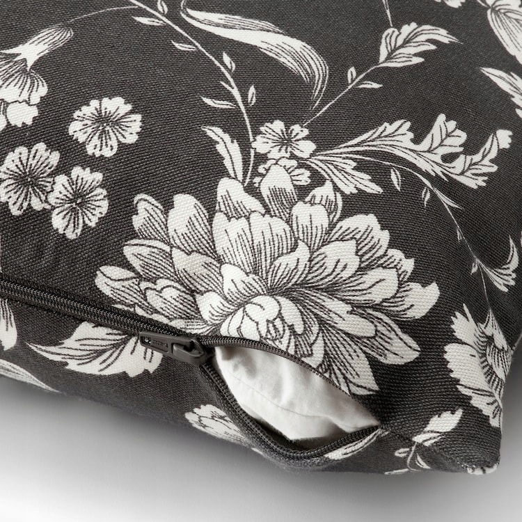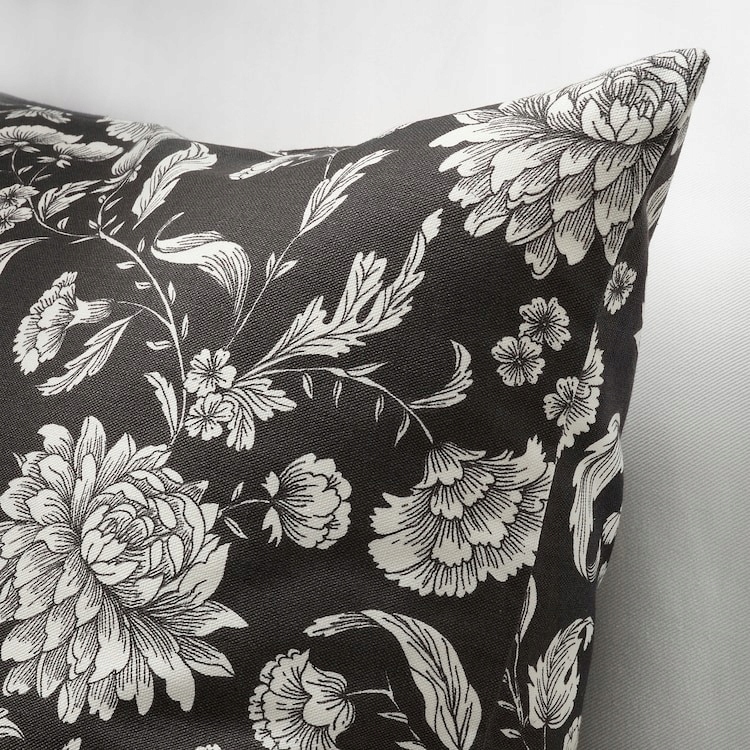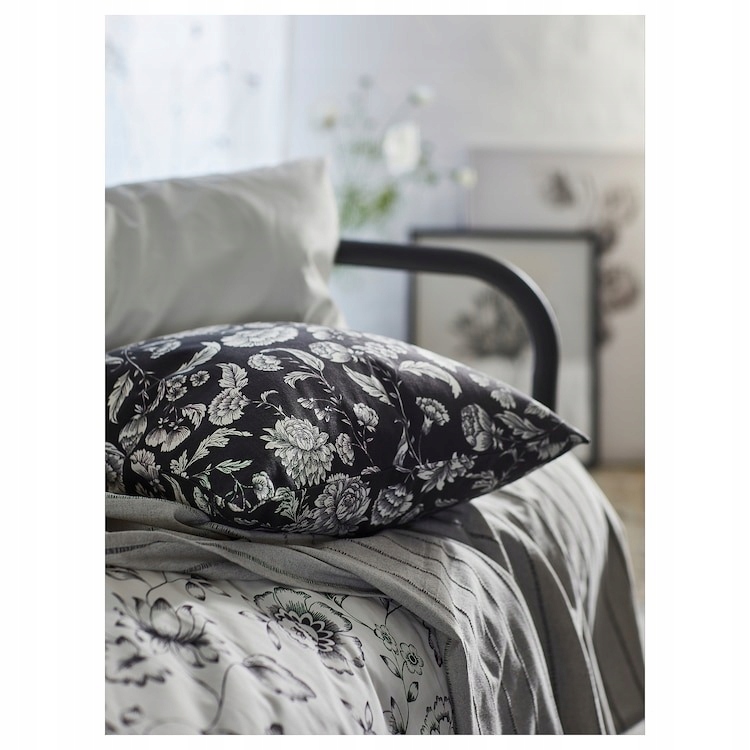 Romantyczne białe kwiaty na antracytowym tle wprowadzą tradycyjny i świeży charakter do każdego łóżka, sofy lub fotela. Poszewka pięknie komponuje się zarówno z jednolitymi, jak i wzorzystymi tkaninami.
