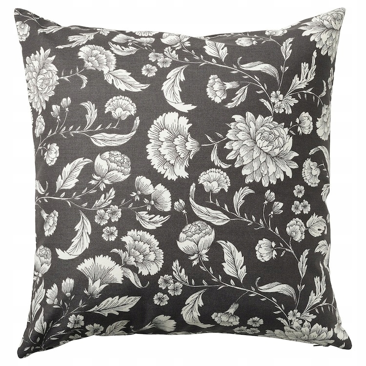 POSZEWKA PODUSZKI ANTRACYTOWA W KWIATY