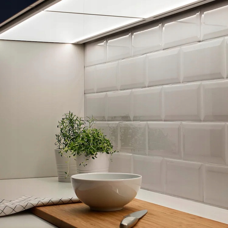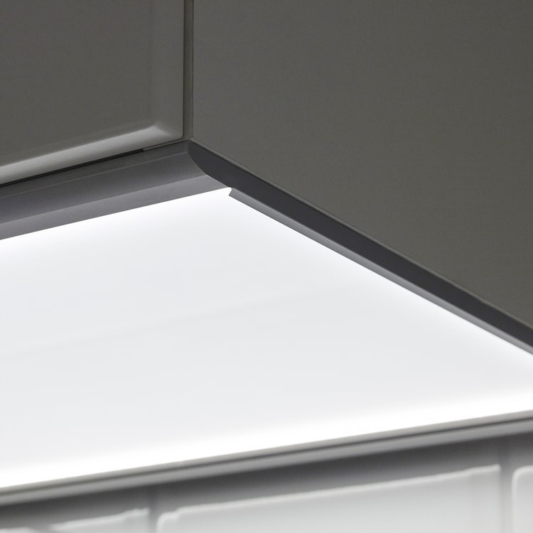 Dzięki temu wąskiemu oświetleniu LED zyskujesz bardziej równomierne oświetlenie całego blatu, ponieważ pokrywa ono cały spód szafki wiszącej.