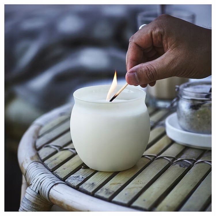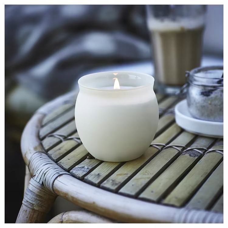 IKEA JAMLIK – ŚWIECA ZAPACHOWA W SZKLE JASNOBEŻOWA – WANILIA