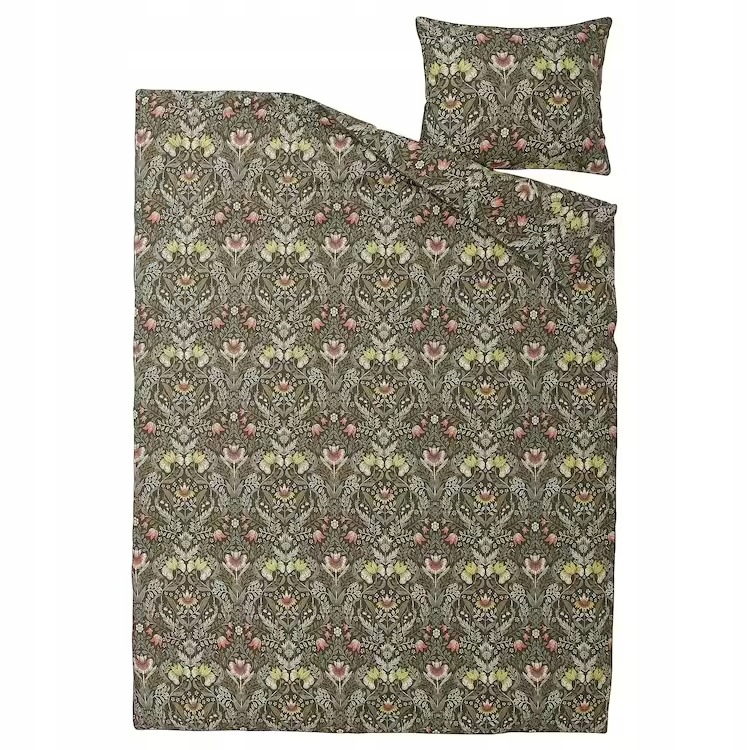 IKEA KARRDUNORT – KOMPLET POŚCIELI CIEMNOZIELONEJ W KWIATY