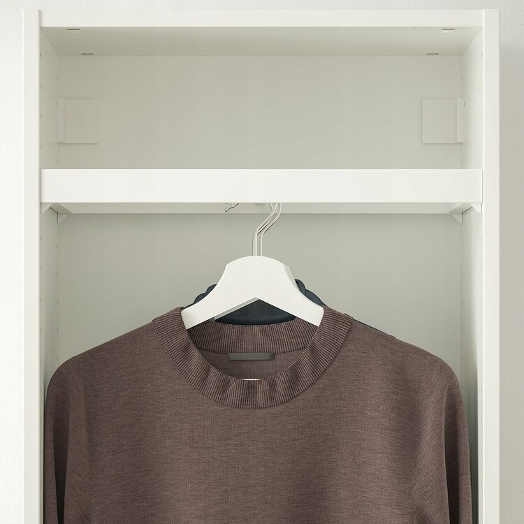 Na drążku można powiesić ubrania przodem w płytkiej, 35 cm ramie szafy.