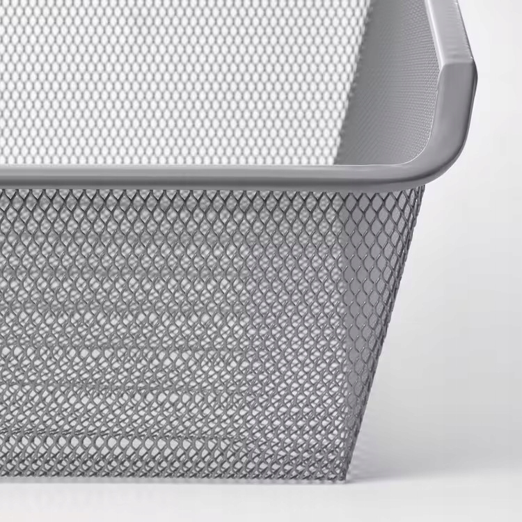 Kosz z siatki przepuszcza powietrze i świetnie nadaje się do przechowywania złożonych ubrań, skarpetek czy akcesoriów.