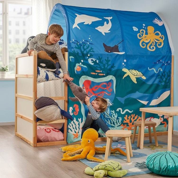 IKEA KURA – BALDACHIM DO ŁÓŻKA PIĘTROWEGO – ZWIERZĘTA OCEANU