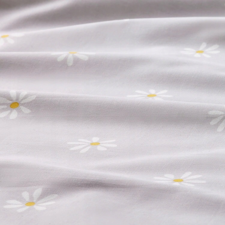 Jedna strona jest szara, a druga biała, obie ozdobione wzorem w stokrotki w różnych rozmiarach.