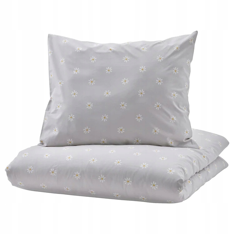 IKEA NATTSLANDA – POSZWA POŚCIEL – SZARY/BIAŁY KWIATY150x200/50×60