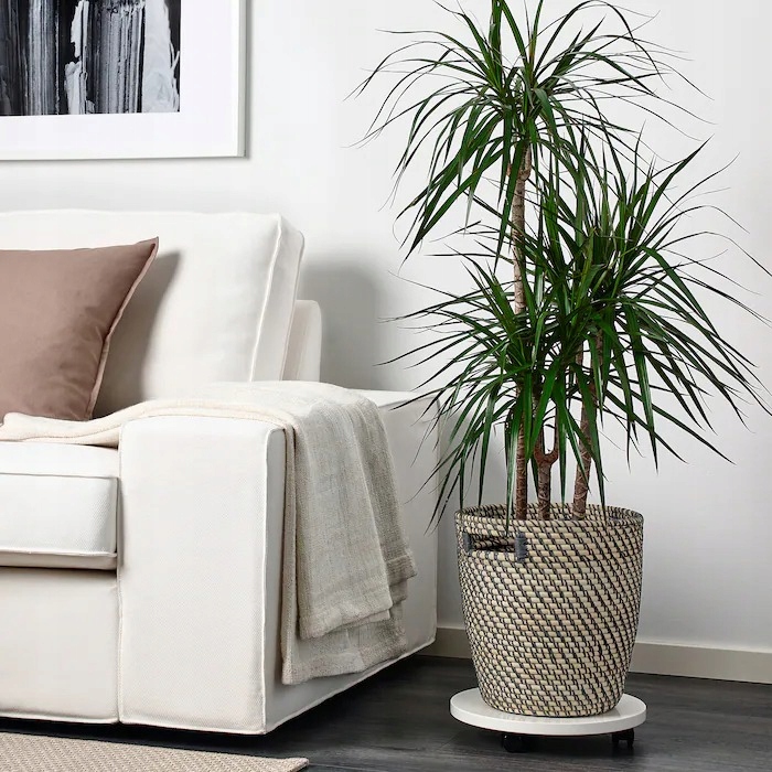 Plastikowe wnętrze doniczki sprawia, że jest wodoodporna.