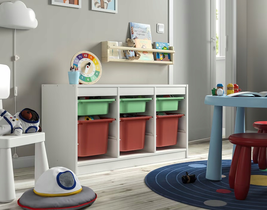 IKEA TROFAST Regał z pojemnikami biały 99x44x56 cm jasnozielony/czerwony