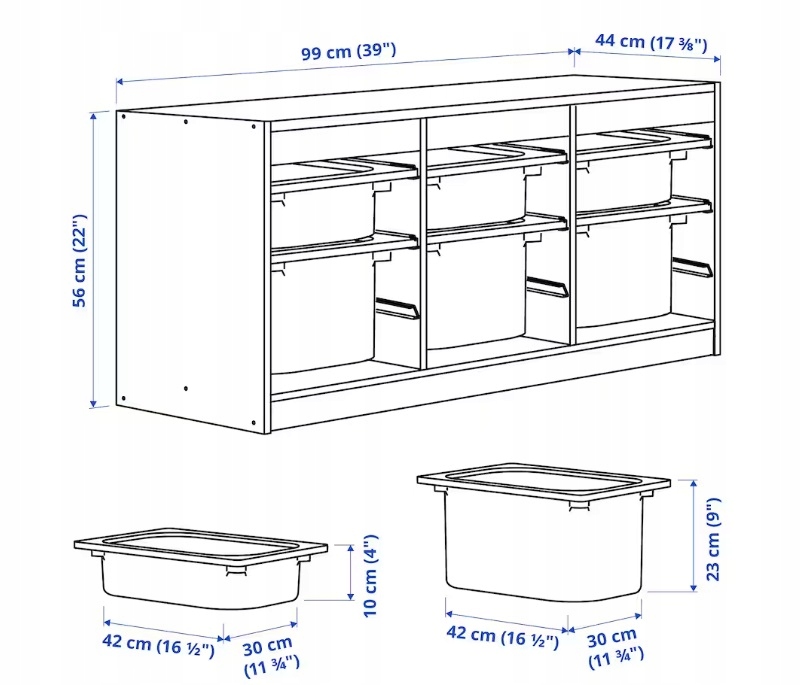 • Rama ma szereg rowków, można więc wstawić pudełka i półki w dowolnym miejscu – i przestawiać w każdej chwili.
