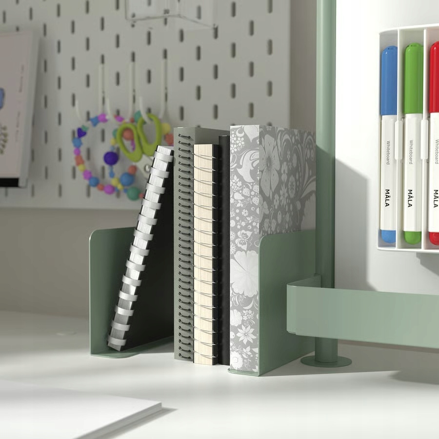 - Podpórki do książek pomagają utrzymać porządek w rzeczach na biurku lub regale z książkami. Łatwo je wsunąć na miejsce na półce lub blacie – i równie łatwo przesunąć w razie potrzeby.