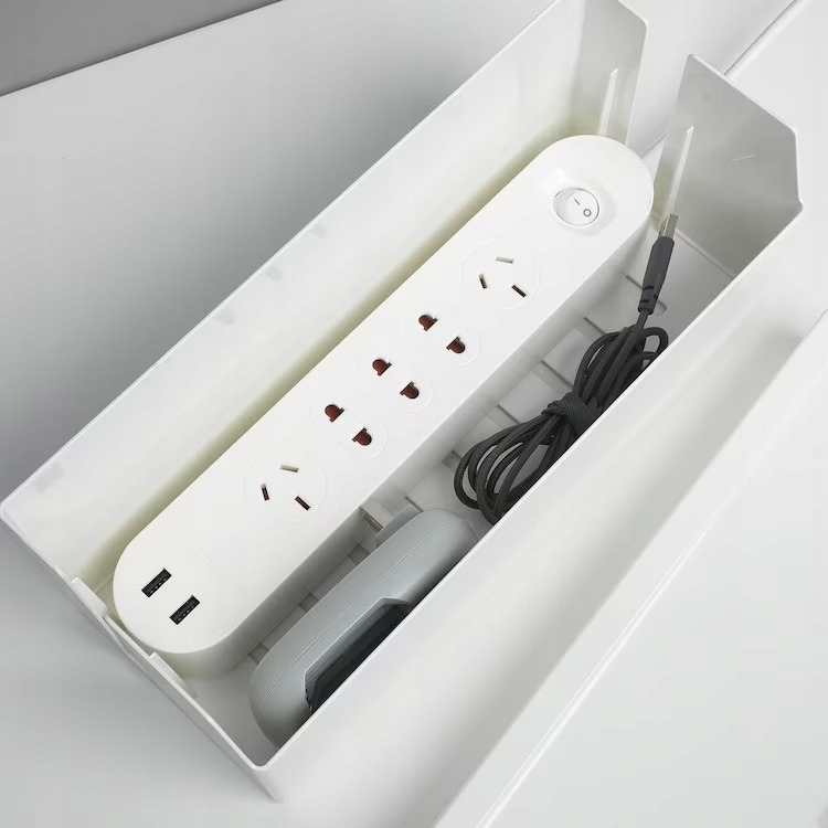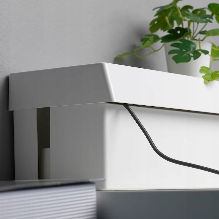 Pudełko pomaga zebrać i ukryć kable, ładowarki i rozgałęziacze na biurku lub podłodze oraz ułatwia czyszczenie.