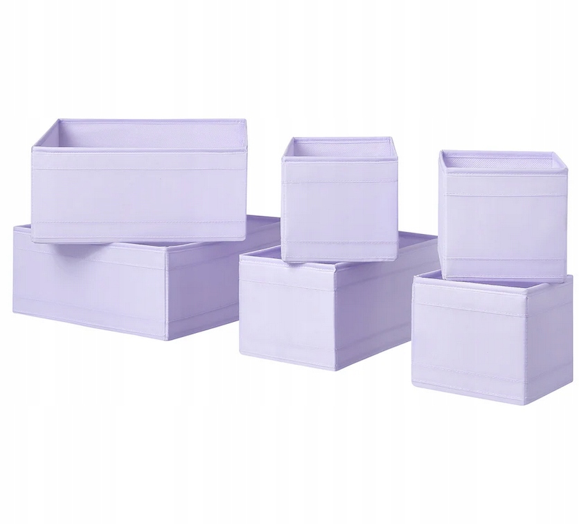 Komplet 6 liliowych pojemników aby zorganizować i posortować różnego rodzaju rzeczy i przedmioty w Twoim domu.