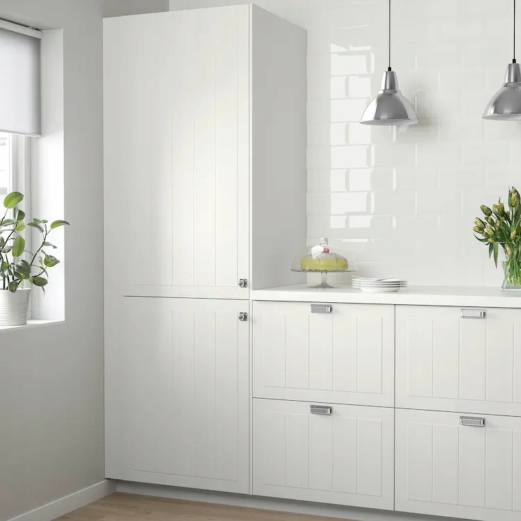 Fronty STENSUND w kolorze białym oferują odrobinę wiejskiego życia dzięki frontom ramiakowym i ryflowanym panelom, które tworzą lekki, rzemieślniczy wygląd. Lakierowana powierzchnia jest odporna na plamy i wilgoć oraz łatwa do przecierania.