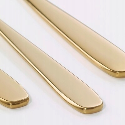 - Nadaj swojemu nakryciu wyjątkowy akcent dzięki tym odświętnym sztućcom, które mają zarówno czyste linie, jak i lśniący kolor mosiądzu.