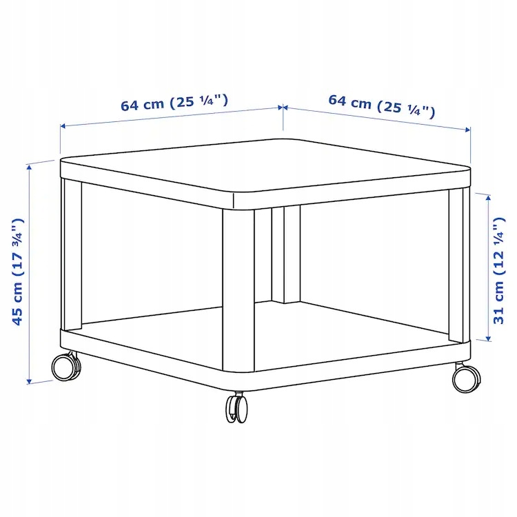 IKEA TINGBY – STOLIK NA KÓŁKACH – 64x45x64cm BIAŁY