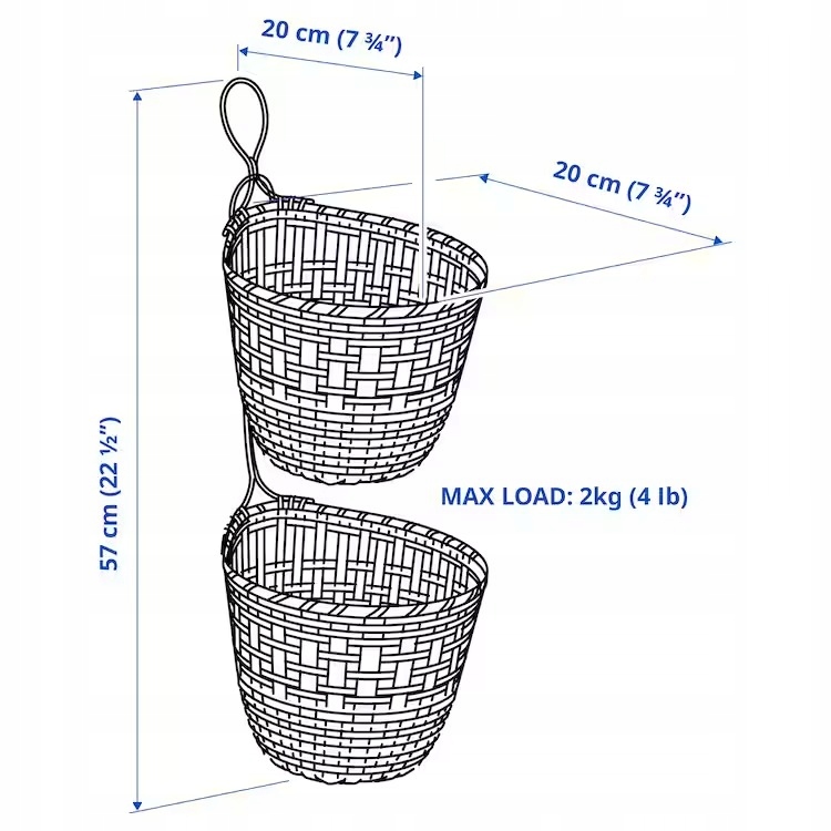 IKEA TOLKNING – KOSZYK WISZĄCY BAMBUSOWY – 2 SZT.