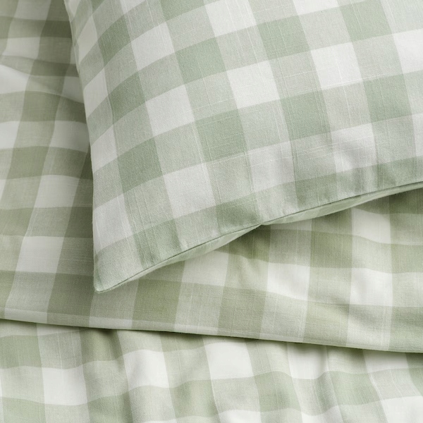 Poszwa na kołdrę i poszewka, blady szaro-zielony biały/w kratkę, 150×200/50×60 cm