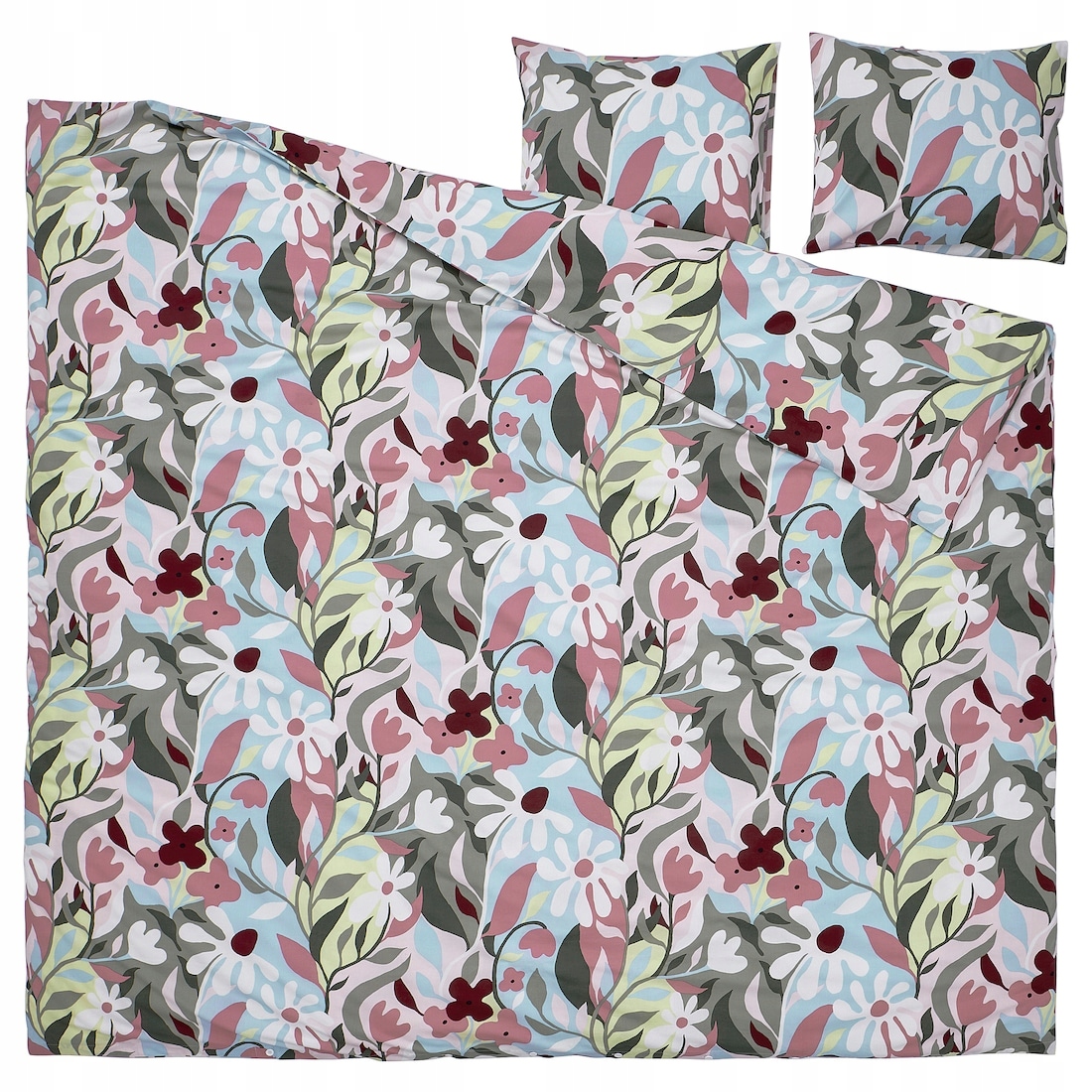 Wnieś do domu odrobinę natury. Komplet pościeli KORSKOVALL z kolorową, kwitnącą łąką zaprojektowaną przez Emmę Prowse cudownie ożywia wnętrze. Bawełna z wiskozą zapewniają materiałowi jedwabistą miękkość.