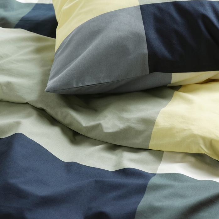Każda poszewka jest wykonana z losowo ciętego materiału, dzięki czemu każda ma niepowtarzalny wygląd.
