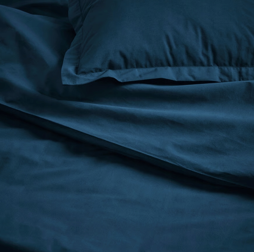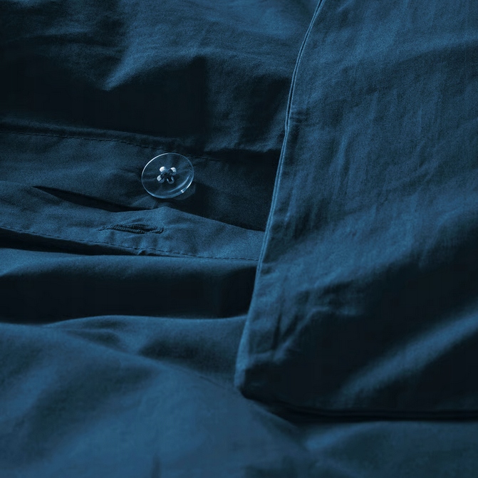 Komplet pościeli HAMPFLOCKEL w ponadczasowym odcieniu granatu stanowi stylowy neutralny element na twoim łóżku. Bawełniany splot perkalowy daje wrażenie przyjemnego luksusu.