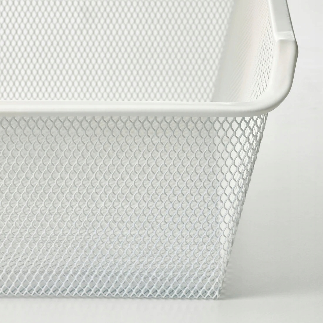 Kosz z siatki przepuszcza powietrze i świetnie nadaje się do przechowywania złożonych ubrań, skarpetek czy akcesoriów.
