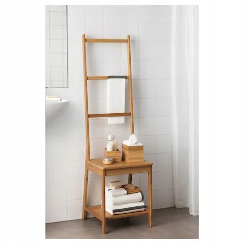 Pomaga zaoszczędzić miejsce, ponieważ masz krzesło i wieszak na ręczniki na tej samej przestrzeni.