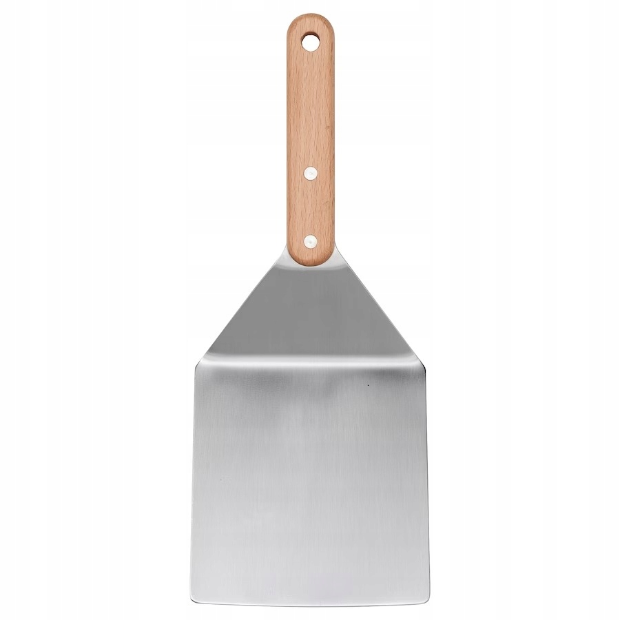 - Bardzo szeroka i krótka łopatka ułatwia obracanie hamburgerów na grillu lub na patelni.
