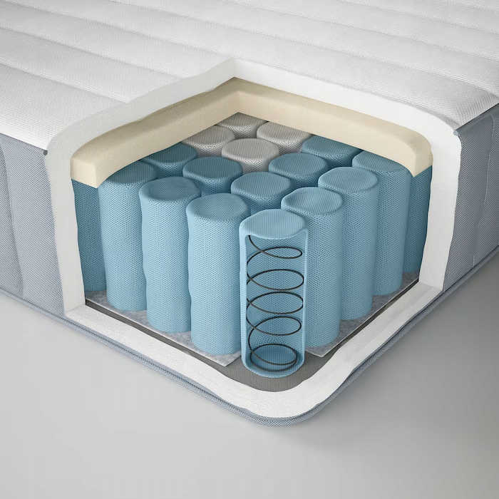 249 sprężyn na metr kwadratowy w materacu o wymiarach 90×200 cm.