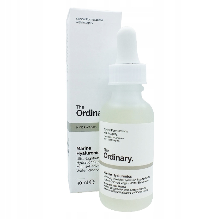 THE ORDINARY – Marine Hyaluronics czyli serum nawilżające do twarzy o lekkiej konsystencji. Produkt ma nawilżyć skórę, dzięki zawartości w składzie glonów i wodorostów odpowiedzialne za zatrzymanie wody w naskórku. Kosmetyk oprócz czerwonych alg hawajskich, mikrofiltrowanych alg niebiesko-zielonych zawiera także aminokwasy, egzopolisacharydy a także glikoproteiny. Całkowite stężenie składników aktywnych w serum wynosi 23%. Serum może być alternatywą do serum Hyaluronics Acid + B5. Jego pH wynosi 4.0 – 5.0.