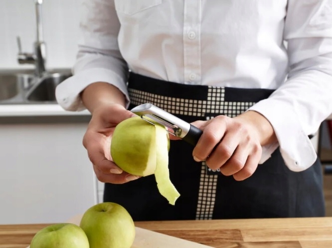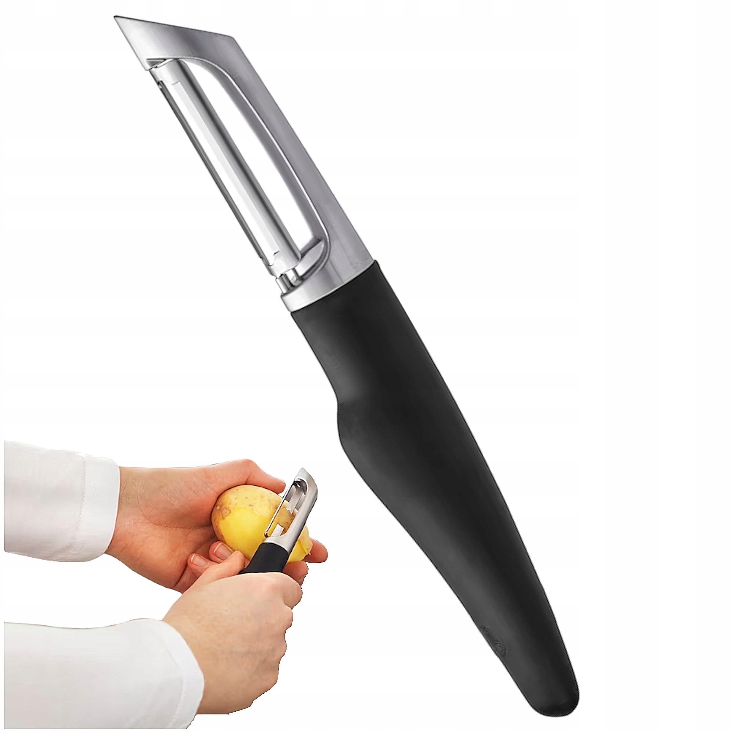 - Ostra wyprofilowana krawędź służy do usuwania zepsutych części ziemniaka.