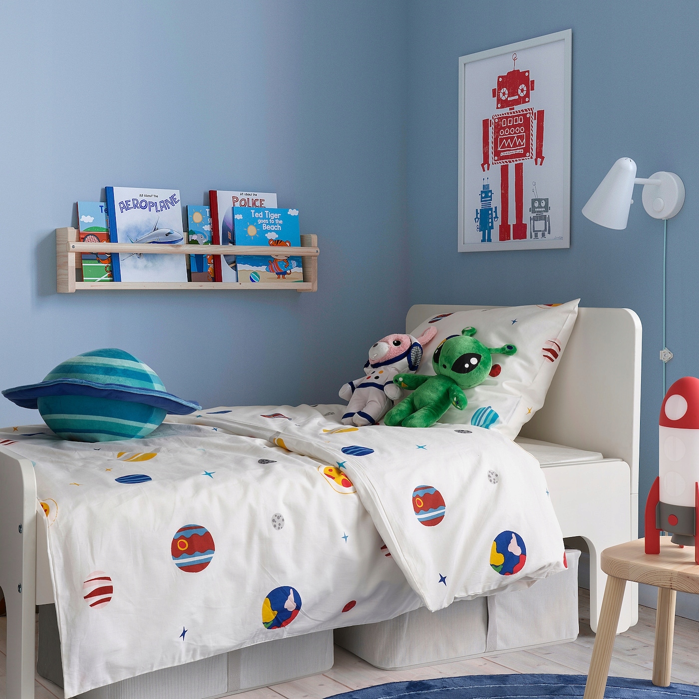 Jeśli chcesz zmienić pokój swojego dziecka w jego własny niezwykły wszechświat, możesz zestawić tę poduszkę z tekstyliami i zabawkami z kolekcji AFTONSPARV.