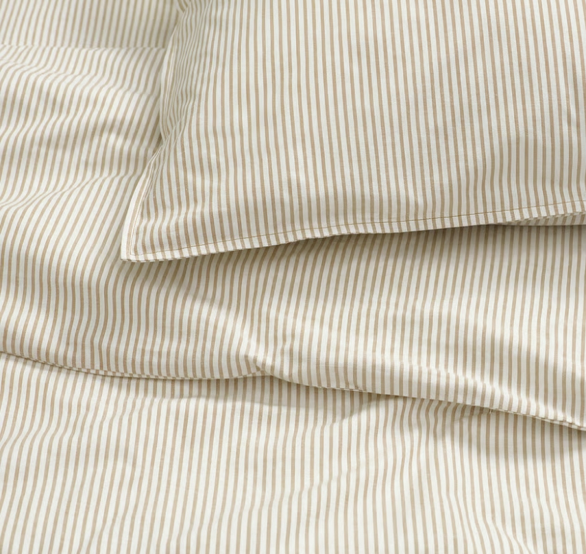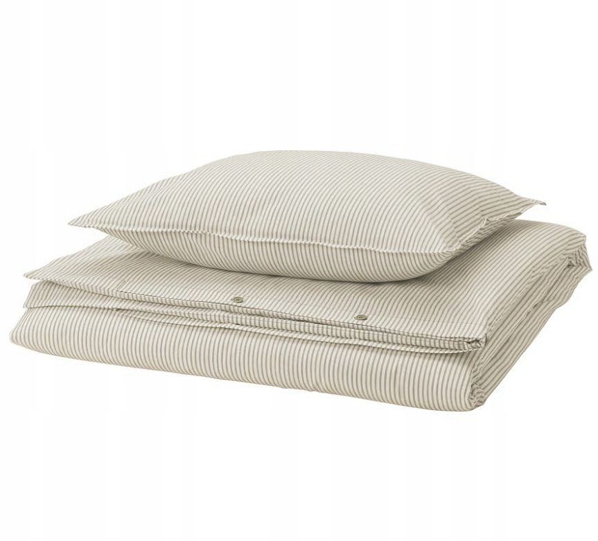 Pościel SOLFIBBLA jest wykonana z miękkiej, 100% bawełny, a barwiona przędza tworzy ponadczasowe beżowo-białe pasy. Grubsza przędza tworzy w sypialni przytulną atmosferę z nutką rzemieślniczego uroku w stylu vintage.