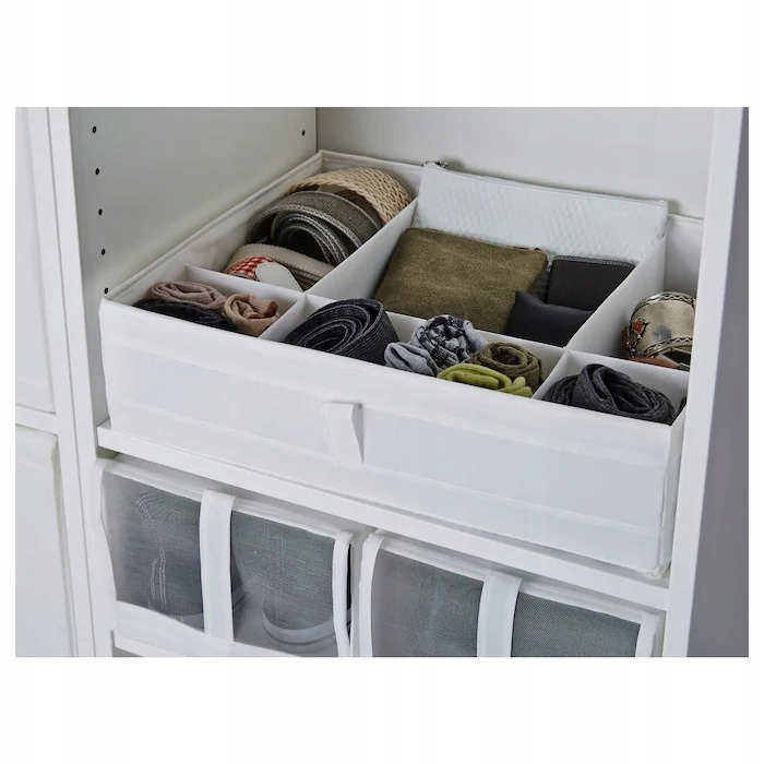 Pomaga uporządkować skarpetki, paski czy biżuterię w szafie lub komodzie.