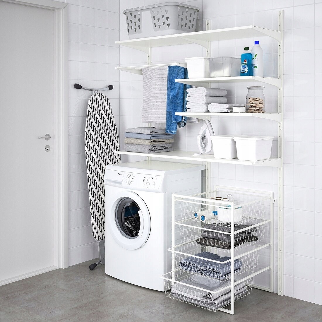 Płynnie wysuwane szuflady z koszami drucianymi.