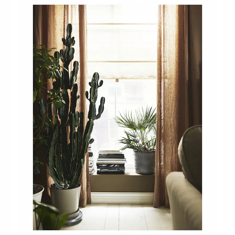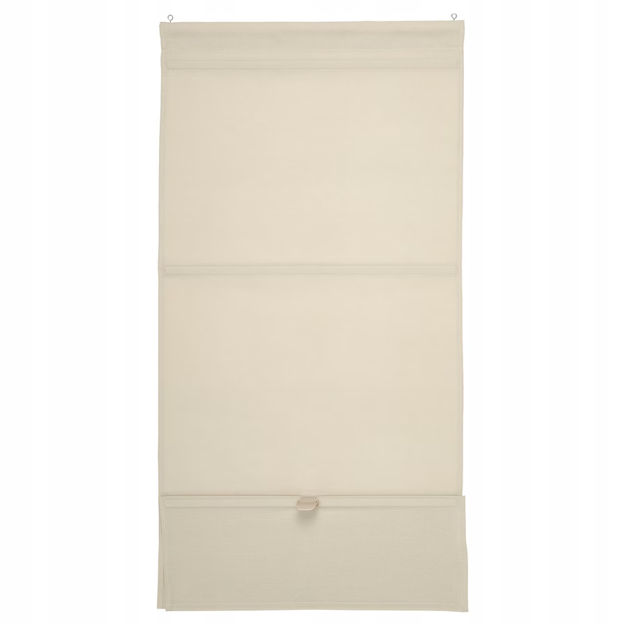 Beżowa roleta rzymska RINGBLOMMA o eleganckim wyglądzie lnu. Materiał przepuszcza światło, tworząc ciepły nastrój. Nadaje się do prania, świetnie sprawdzi się w każdym pomieszczeniu, także w kuchni i łazience. Magnetyczne podnoszenie/opuszczanie.