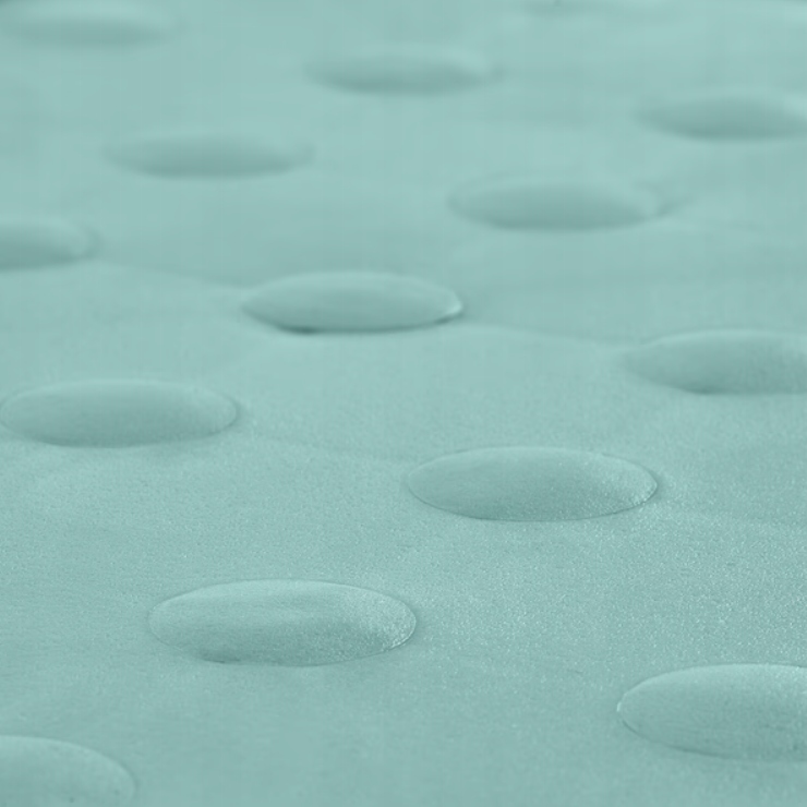 Stołek stoi stabilnie w miejscu dzięki zabezpieczeniu antypoślizgowemu pod spodem.