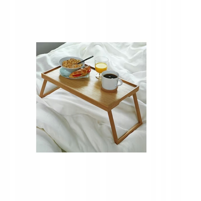 Składane nóżki umożliwiają wygodne przechowywanie stolika do łóżka bez zajmowania dodatkowego miejsca.