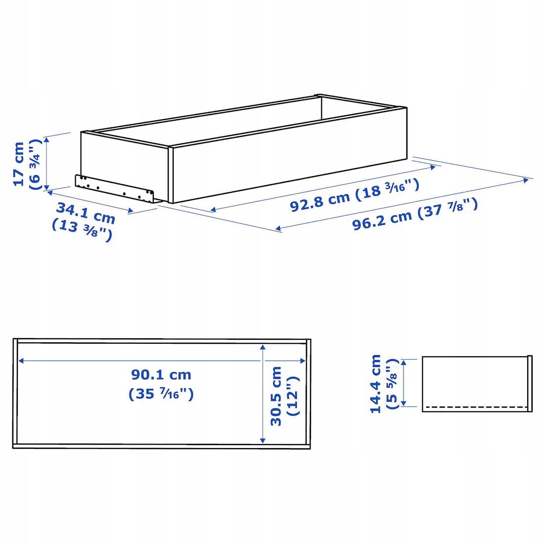 - Szerokość szuflady (wewnętrzna): 90.1 cm