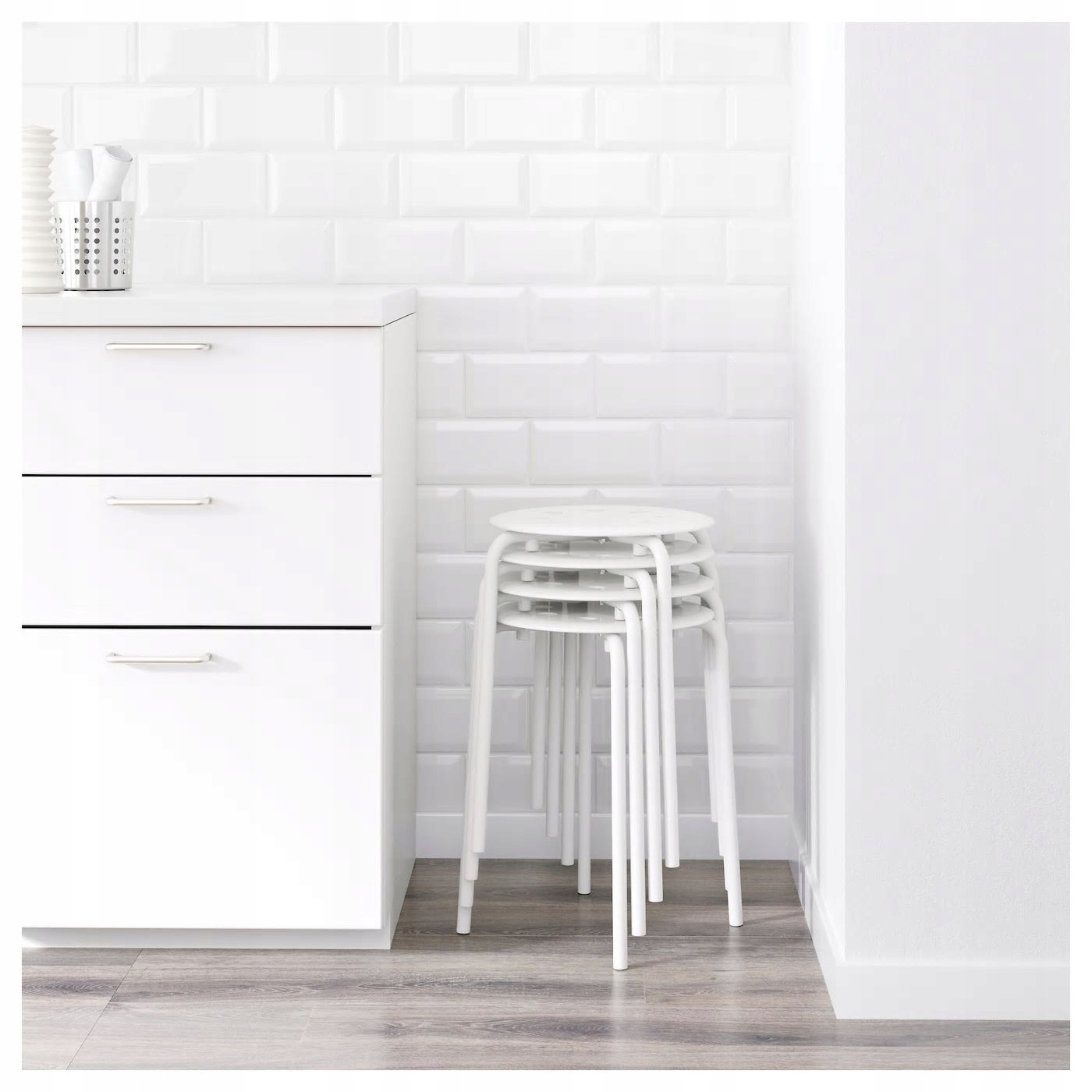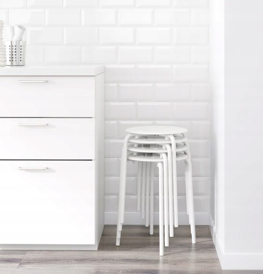 Stołki można ustawiać jeden na drugim, można więc mieć kilka w zapasie, a zajmują tyle samo miejsca co jeden stołek.