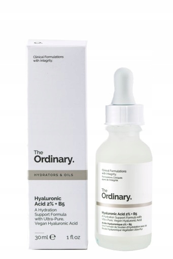 Formuła serum The Ordinary Hyaluronic Acid 2%+B5 wykorzystuje trzy formy HA o różnych masach cząsteczkowych oraz kwas w formie polimerów, dzięki czemu zapewniają wielowymiarowe nawilżenie i nawodnienie na wielu poziomach naskórka – nie tylko na jego powierzchni. Skóra odzyskuje sprężystość i staje się „napompowana” wilgocią.