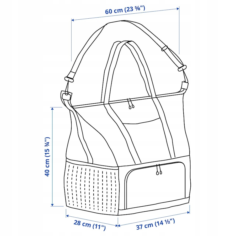 - Torba jest wygodna do noszenia, ponieważ ma regulowany pasek na ramię i uchwyty.