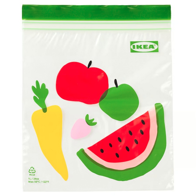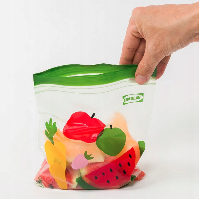 Ta wersja torebki ISTAD wykonana jest w min. 50% z materiałów z recyklingu. Może być używana wielokrotnie. Zachowuje świeżość przechowywanych w niej produktów. Można wkładać do zamrażalnika, a także przechowywać w niej jedzenie o temp. do 50°C.