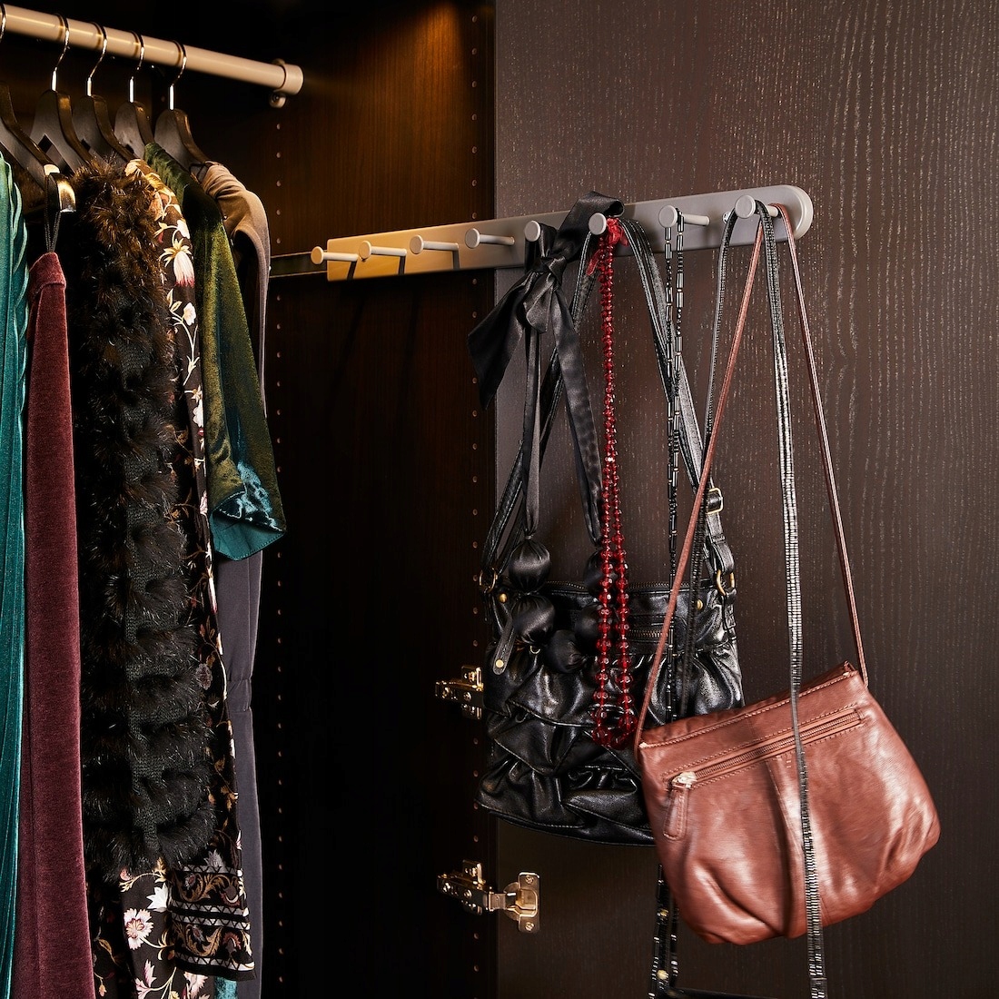 Możesz z łatwością przeglądać swoje przybory i sięgnąć do nich, bo wieszak wielofunkcyjny jest wysuwany.