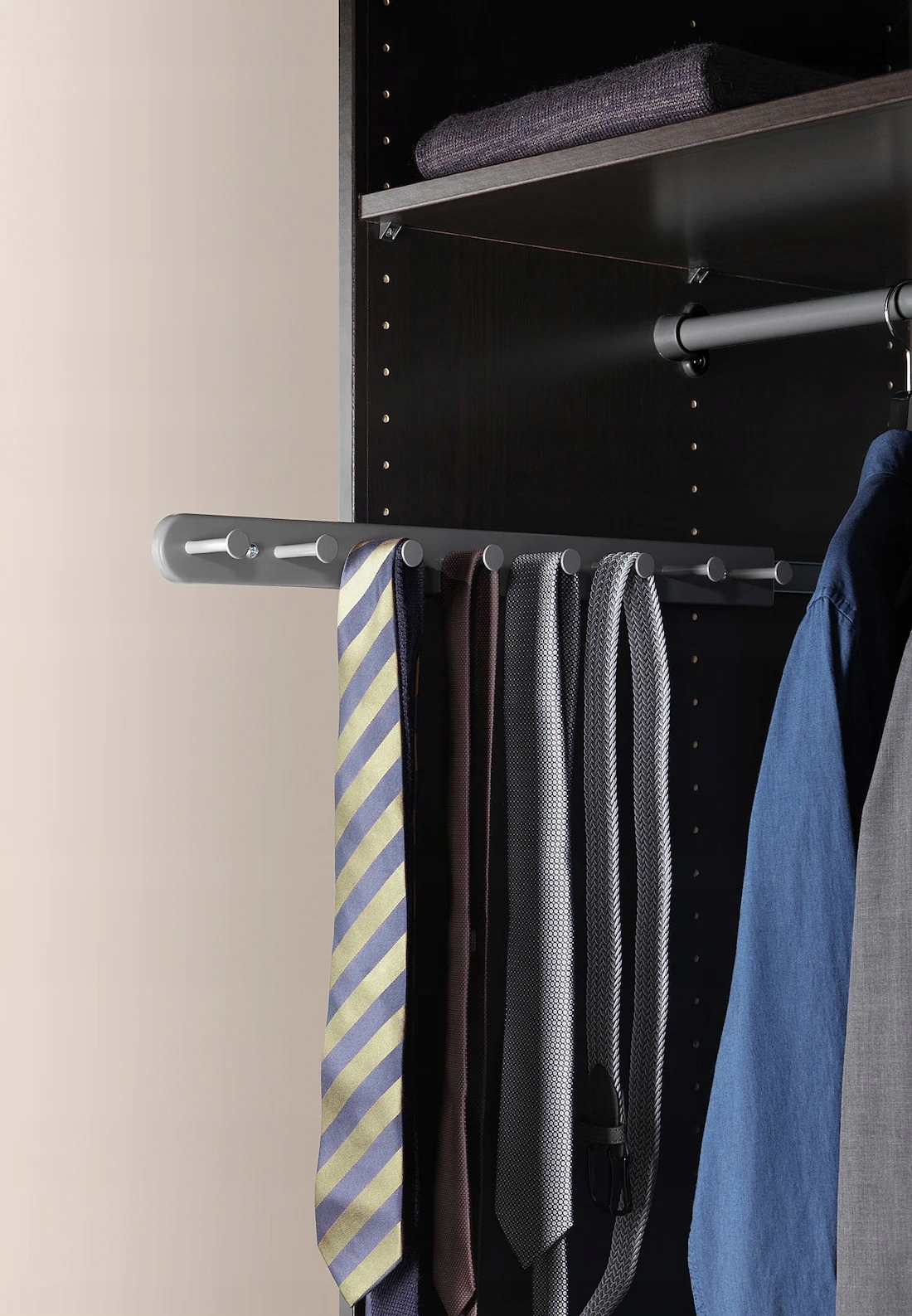 Wielofunkcyjny wieszak pomoże ci uporządkować paski, szale, krawaty czy inne akcesoria.