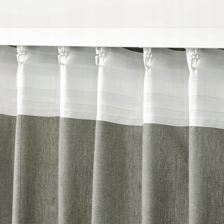 Zazwyczaj zaleca się użycie 15 żabek i haczyków do każdej zasłony o szerokości 140 cm. Możesz zwiększyć lub zmniejszyć ich liczbę w zależności od tego, czy chcesz uzyskać węższe, czy pełniejsze fałdy marszczenia.
